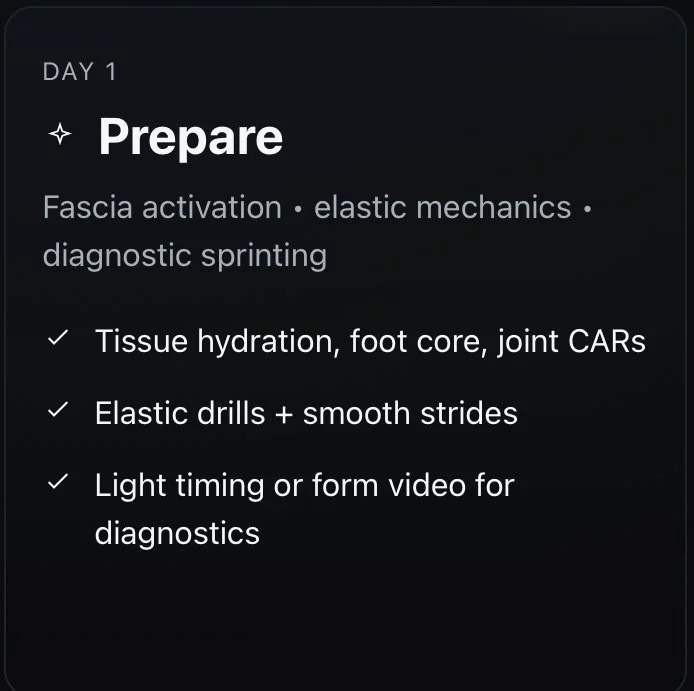Prepare. Prime. Project- fascia first sprint system for speed that transfers to performance.